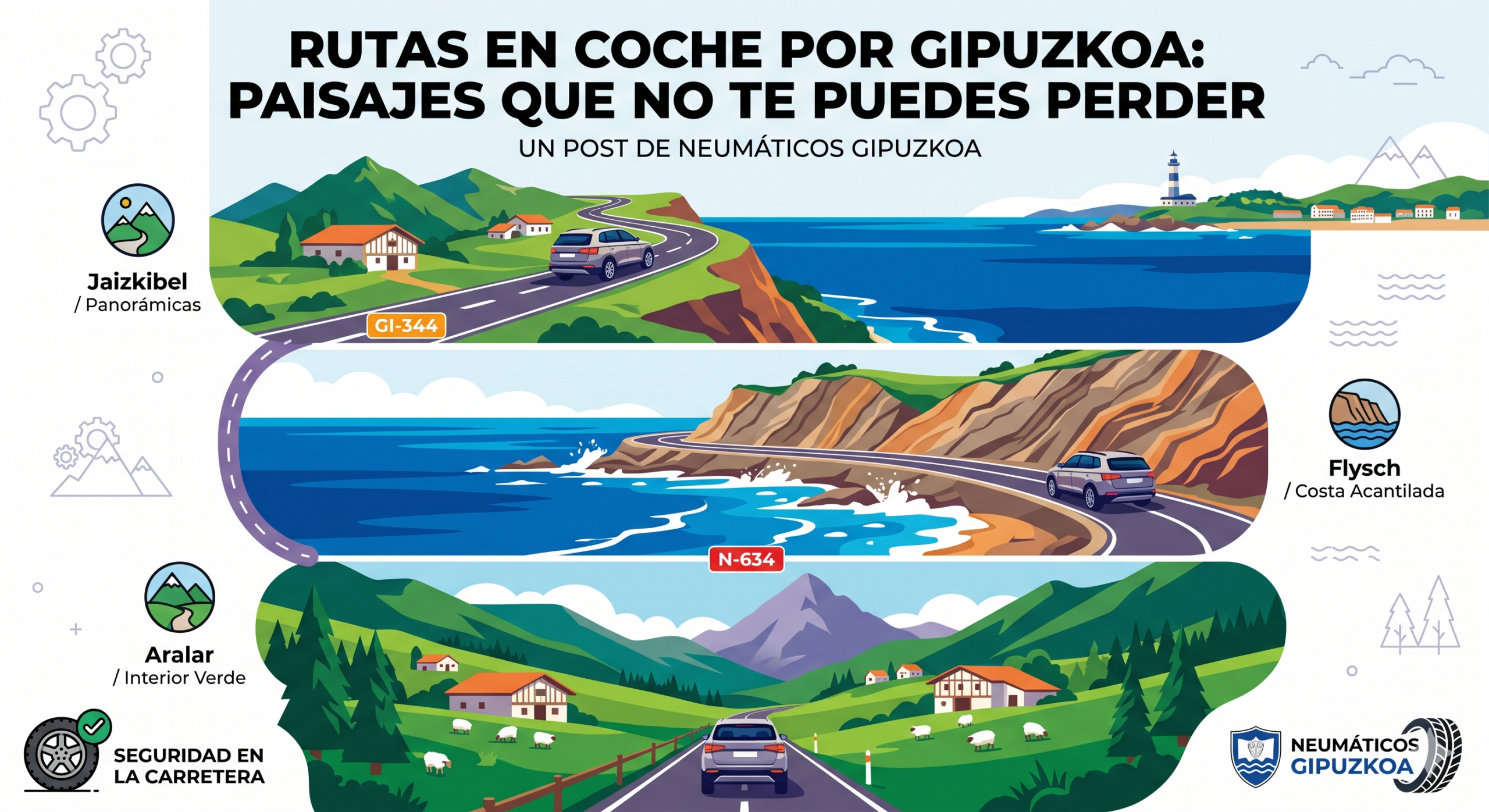 Hacer una ruta en coche por nuestra provincia es mucho más que desplazarse de un punto a otro; es una experiencia inmersiva. En Neumáticos Gipuzkoa somos unos apasionados de nuestro entorno y queremos compartir contigo tres rutas imprescindibles que te dejarán sin aliento. Eso sí, nuestras carreteras de costa y montaña son tan hermosas como exigentes, así que antes de encender el motor, asegúrate de que tus neumáticos y frenos están preparados para el viaje.